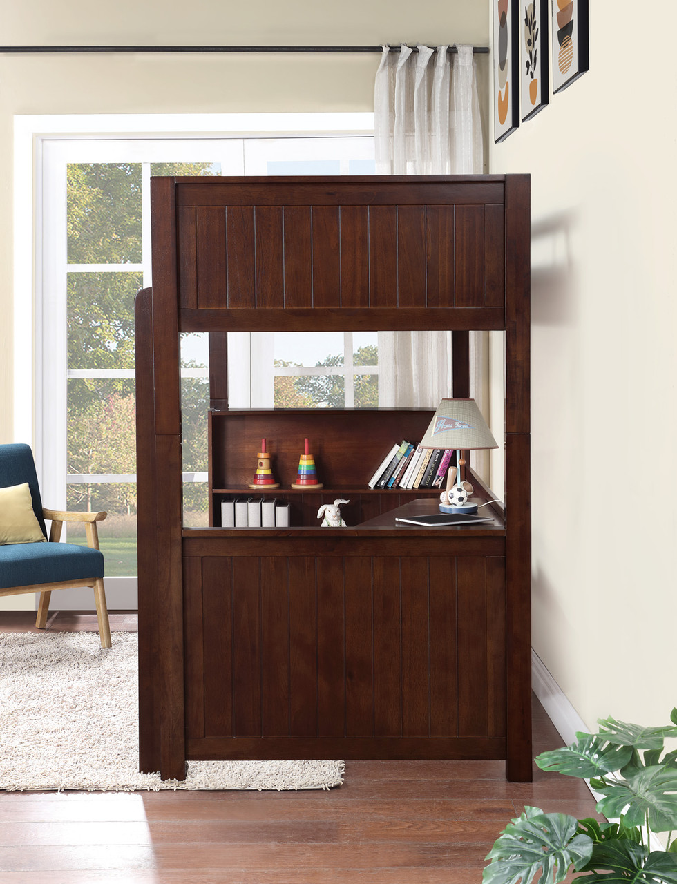 - Since the loft bed converts to a bunk bed, some of the hardware is not concealed