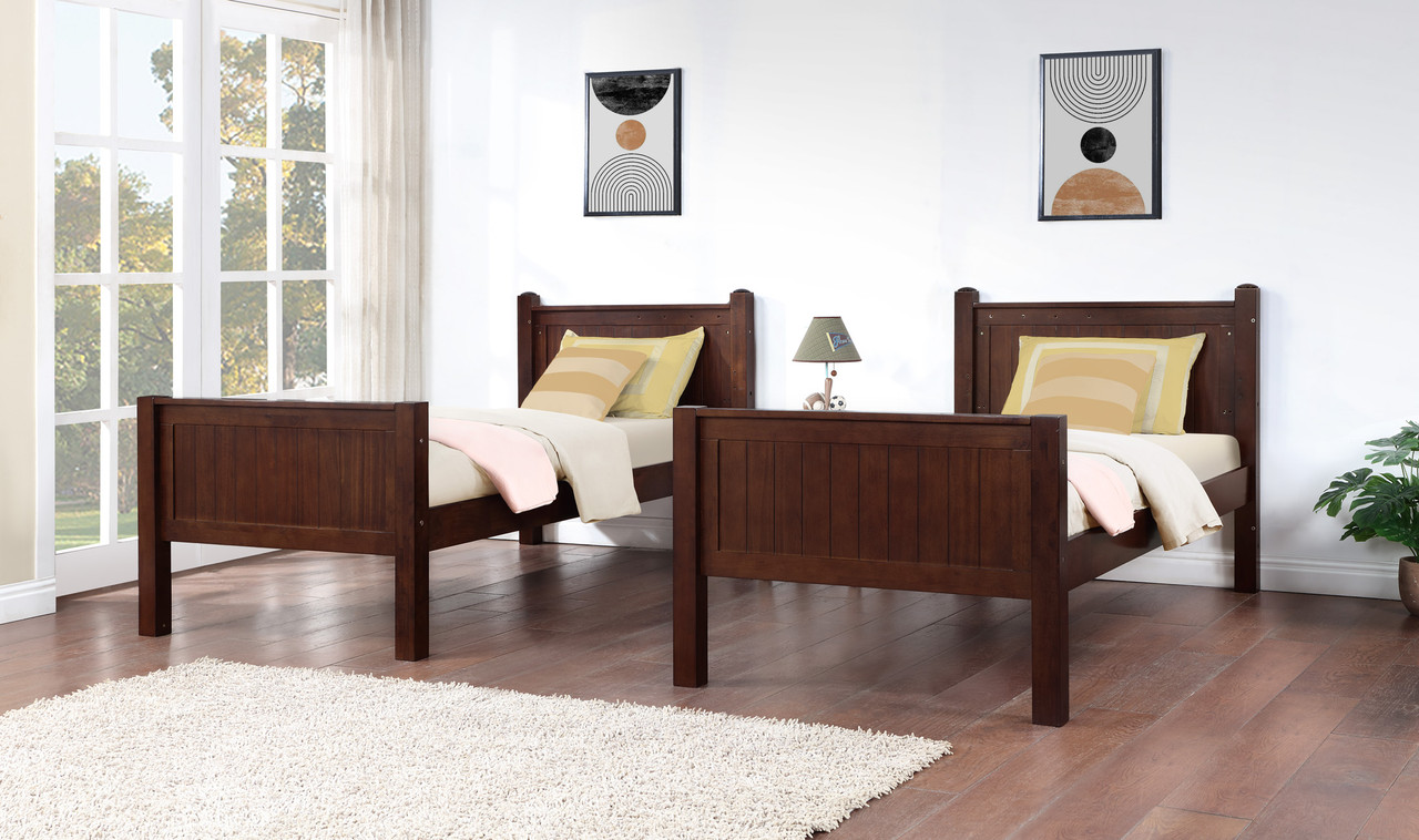 - Converts from loft to bunk bed to 2 separate beds