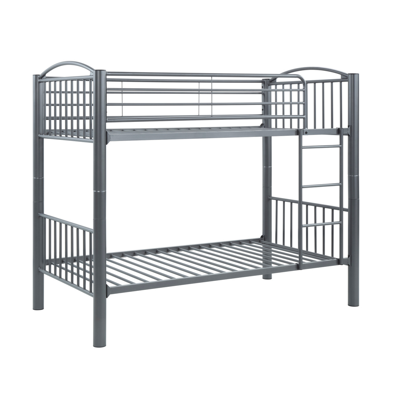 The stylistically versatile framing of the Colby Collection provides the sleep space you need for your child’s bedroom. The metal frame of the twin-over-twin bunkbed furthers the decorative versatility of the collection. Available in black and gray finish.