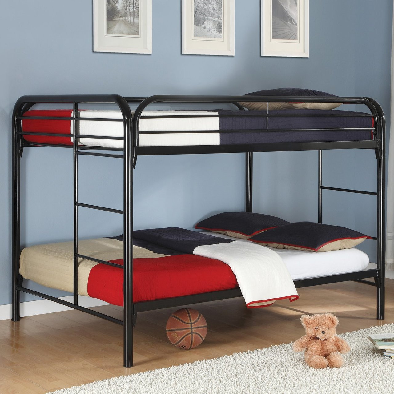 Functionality meets style with the Adrian full size metal bunk bed. Featuring a full-size beds, tubular metals, built-in ladders on the head & foot of the bed as well as safety guardrails. The welded metal slat system makes this bunk mattress ready. Perfect for youth and teens looking to utilize their space! Some assembly is required.
