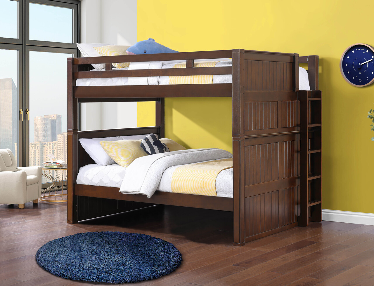 - Top bunk features full length safety guard-rails on all sides