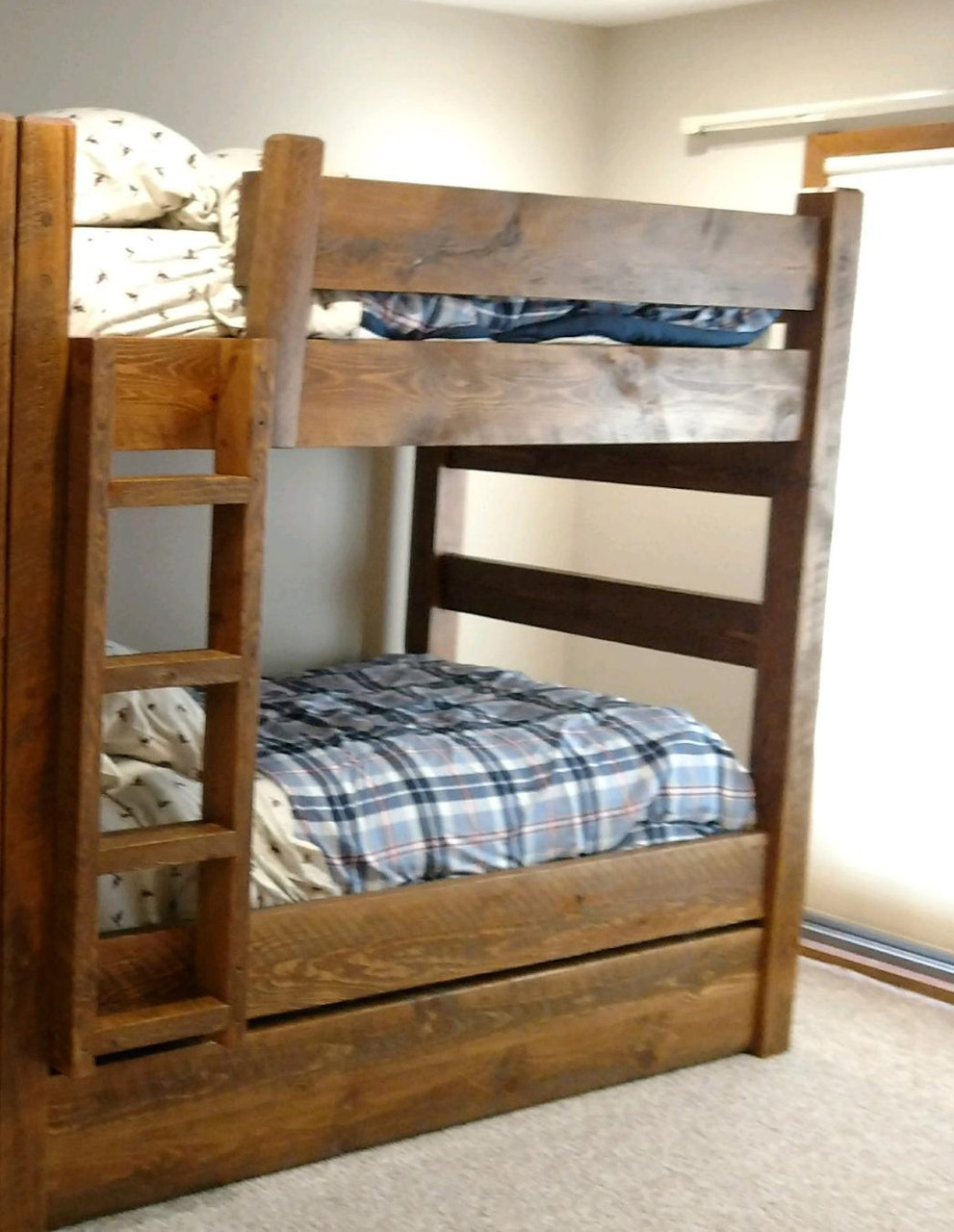 The bunk bed is not reclaimed Barnwood, but rather rough sawn pine that looks like barnwood