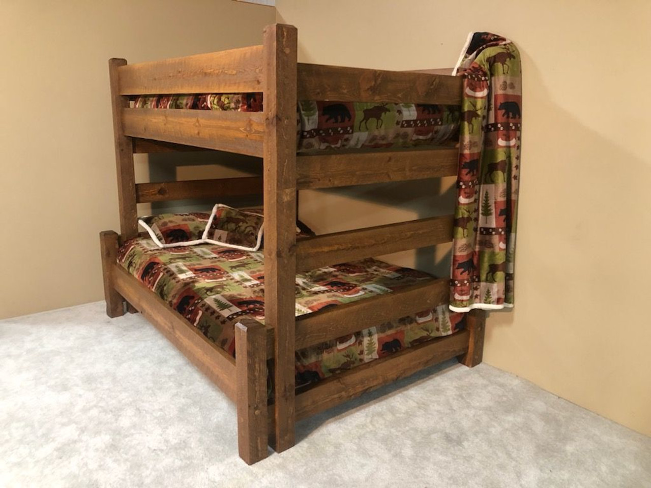 - The bunk bed is not reclaimed Barnwood, but rather rough sawn pine that looks like Barnwood