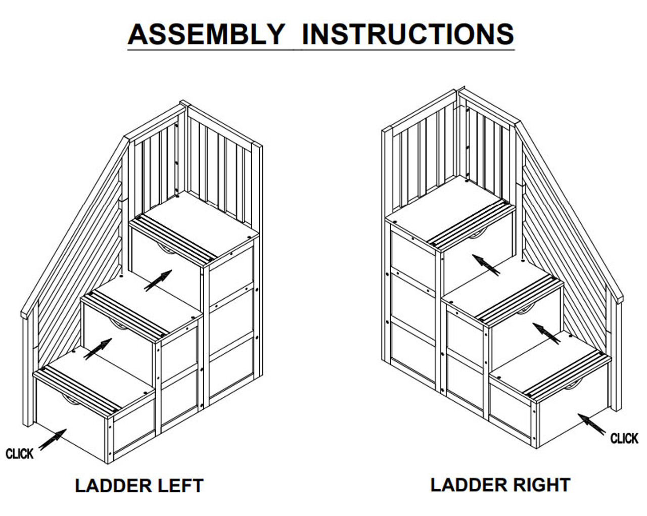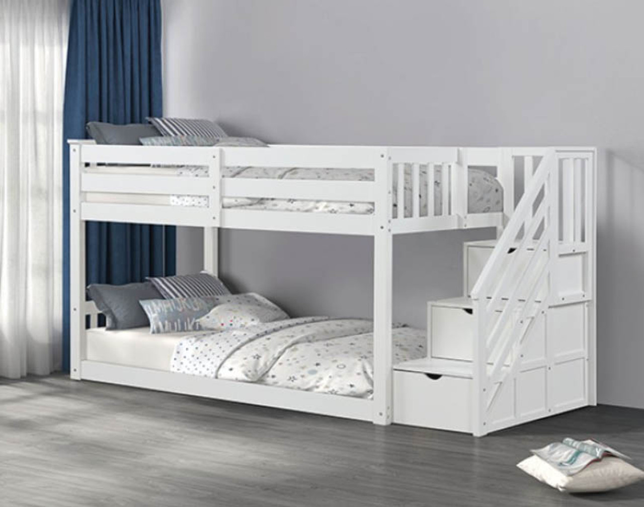 - Access to upper bed: reversible 3-drawer storage steps