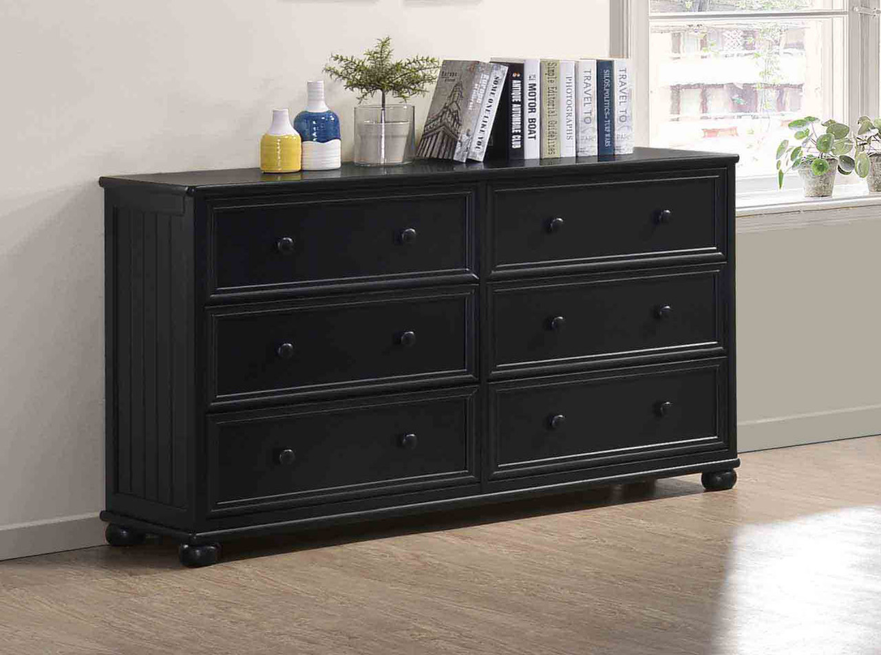 This is the Dillon 6-drawer dresser. Crafted from solid wood, bead board paneling and is available in white, black, espresso, navy blue and gray finish. Key features include clean lines, English dove tail construction, Euro rails, full extension with dividers, corner blocks and wooden pull knobs. This dresser perfectly complements any Dillon bunk or loft bed. Matching mirror is sold separately and can be added to your order under options. The dresser comes fully assembled.