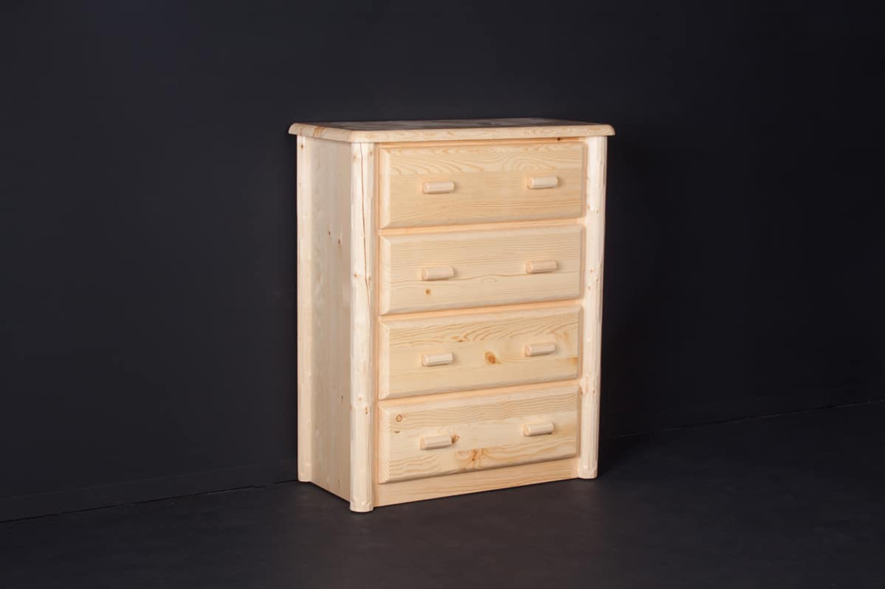 The Northwoods four drawer log chest is perfect if you want something that isn’t too big or too small. This log chest of drawers has four large drawers meant to hold just about anything. Pair this rustic chest with a log bed and a couple log nightstands, and you have all the log cabin bedroom furniture you need. It is constructed of knotty Norway pine that is clean peeled by hand, using a draw knife, which gives a scalloped look for character.
