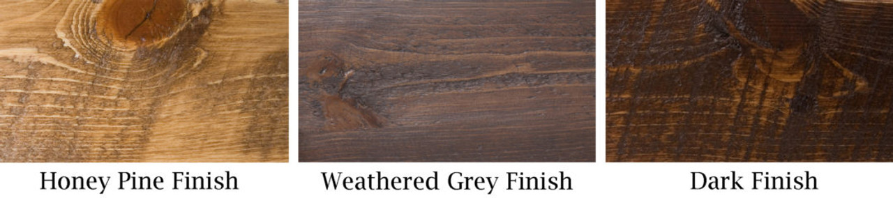 - All drawer fronts, corner posts, side panels, and tops are made from rough sawn pine lumber