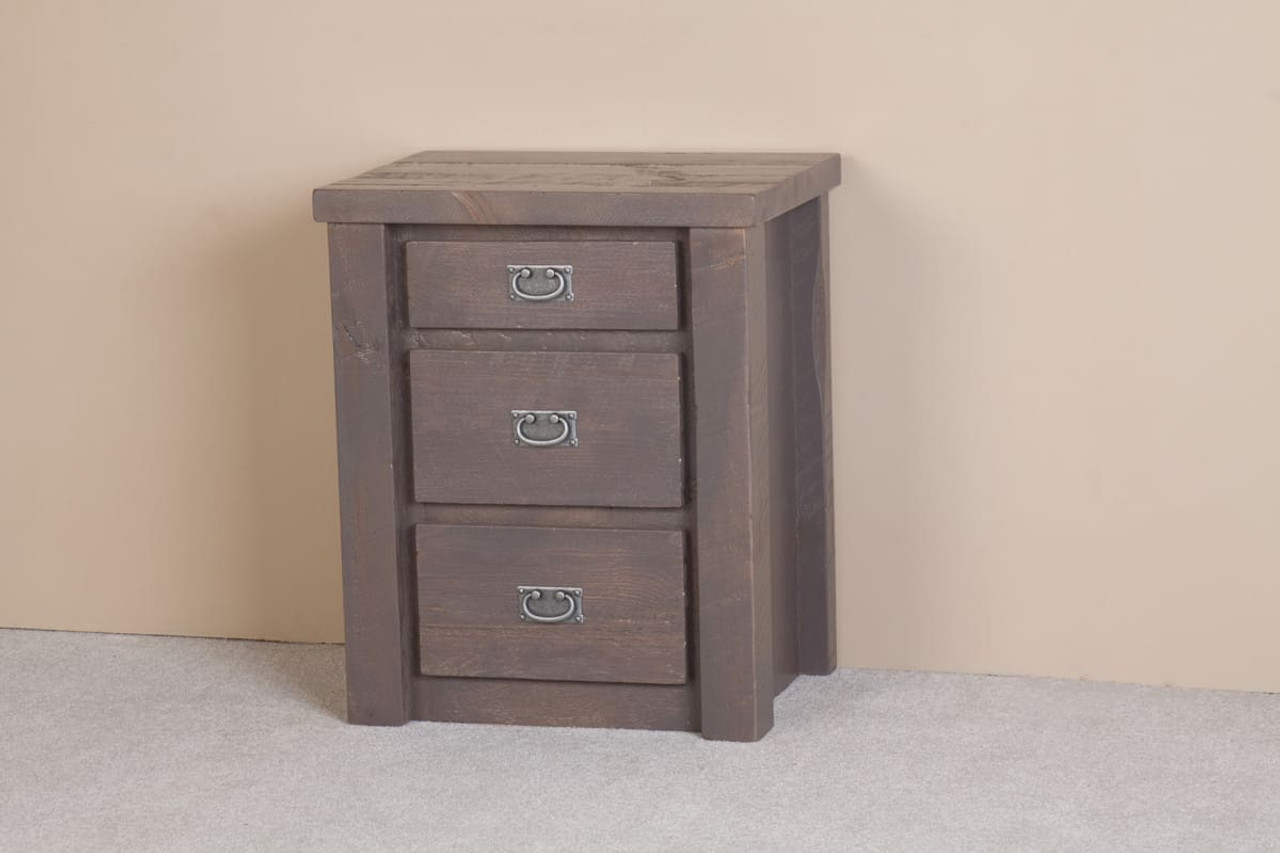 The Lodge barnwood three drawer nightstand fits nicely along either side of any barnwood bed. This rustic nightstand is the biggest nightstand we typically make. It has one smaller drawer over two larger drawers. The smaller drawer works well for placing reading glasses and other personal belongings into. All the barn wood furniture is made from rough sawn pine to replicate the reclaimed barn wood look at an affordable price. The solid pine timbers used to make this piece still has many of the original saw blade marks in them from the mill.