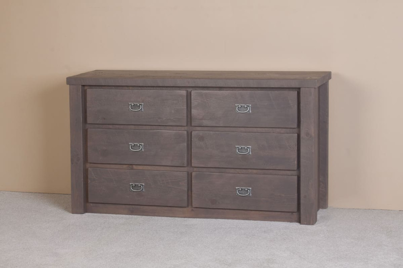 The Lodge barnwood 6-drawer dresser is a great piece to compliment any farmhouse decor or rustic bedroom furniture. This rustic barnwood dresser comes standard with six drawers great for storing clothing. The rustic dresser is made using rough sawn timbers to replicate the reclaimed barn wood look at an affordable price. This barnwood dresser matches all of our barnwood beds. Add a bed and a couple nightstands, and you have a complete bedroom furniture set.