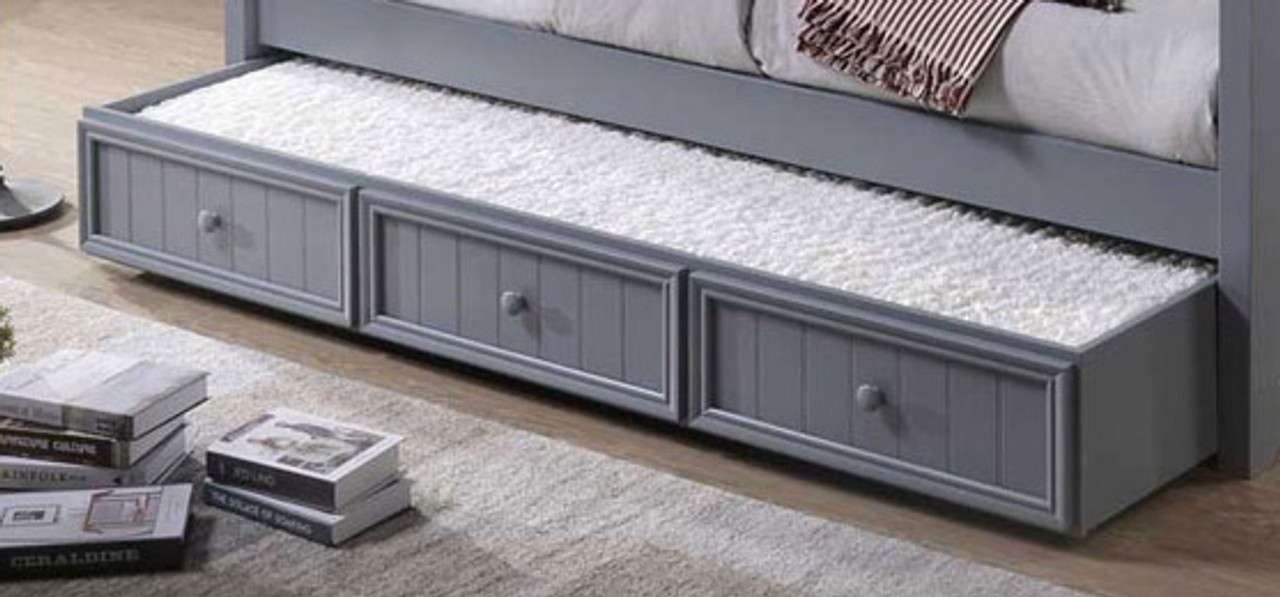 - Beadboard style under-bed drawers and XL twin trundle are available under options