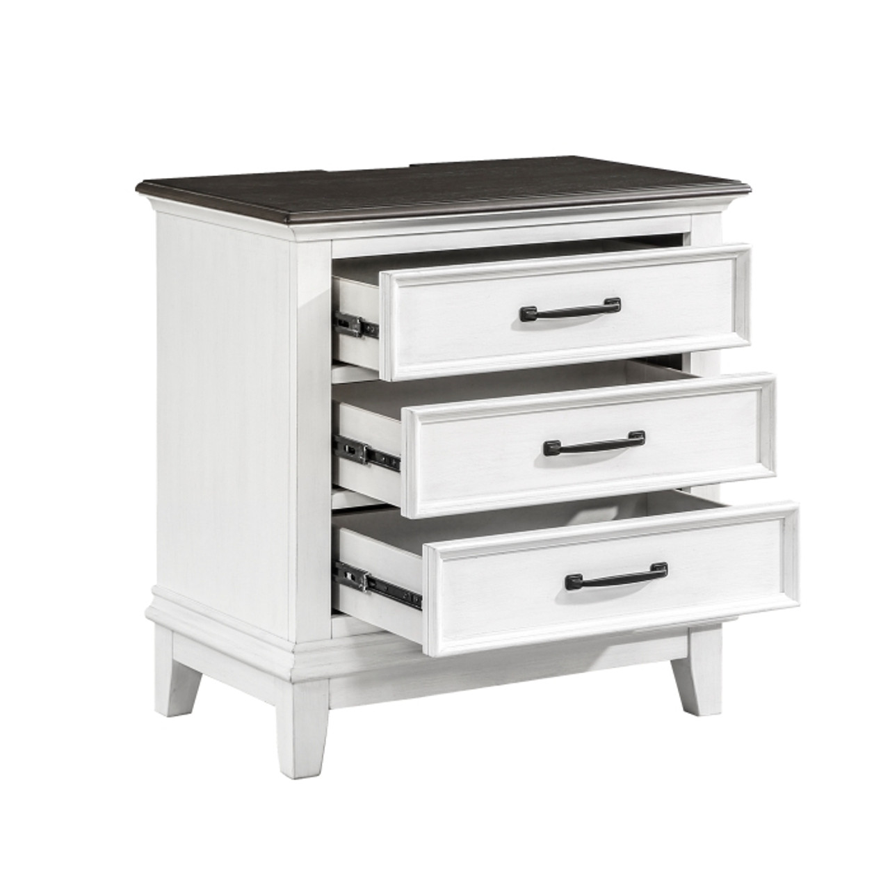 - Nightstand: 3 dovetail drawers with ball bearing glides