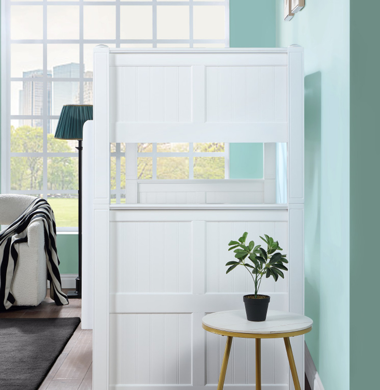 The Dillon Extra Long Twin Bunk Bed is built from eco-friendly solid hardwood with bead board detailing, offering durability and a refined look. Designed for versatility, this XL bunk bed suits youth, adults, and college students alike. The design includes privacy-enhancing beadboard paneling and hidden hardware for a sleek appearance.