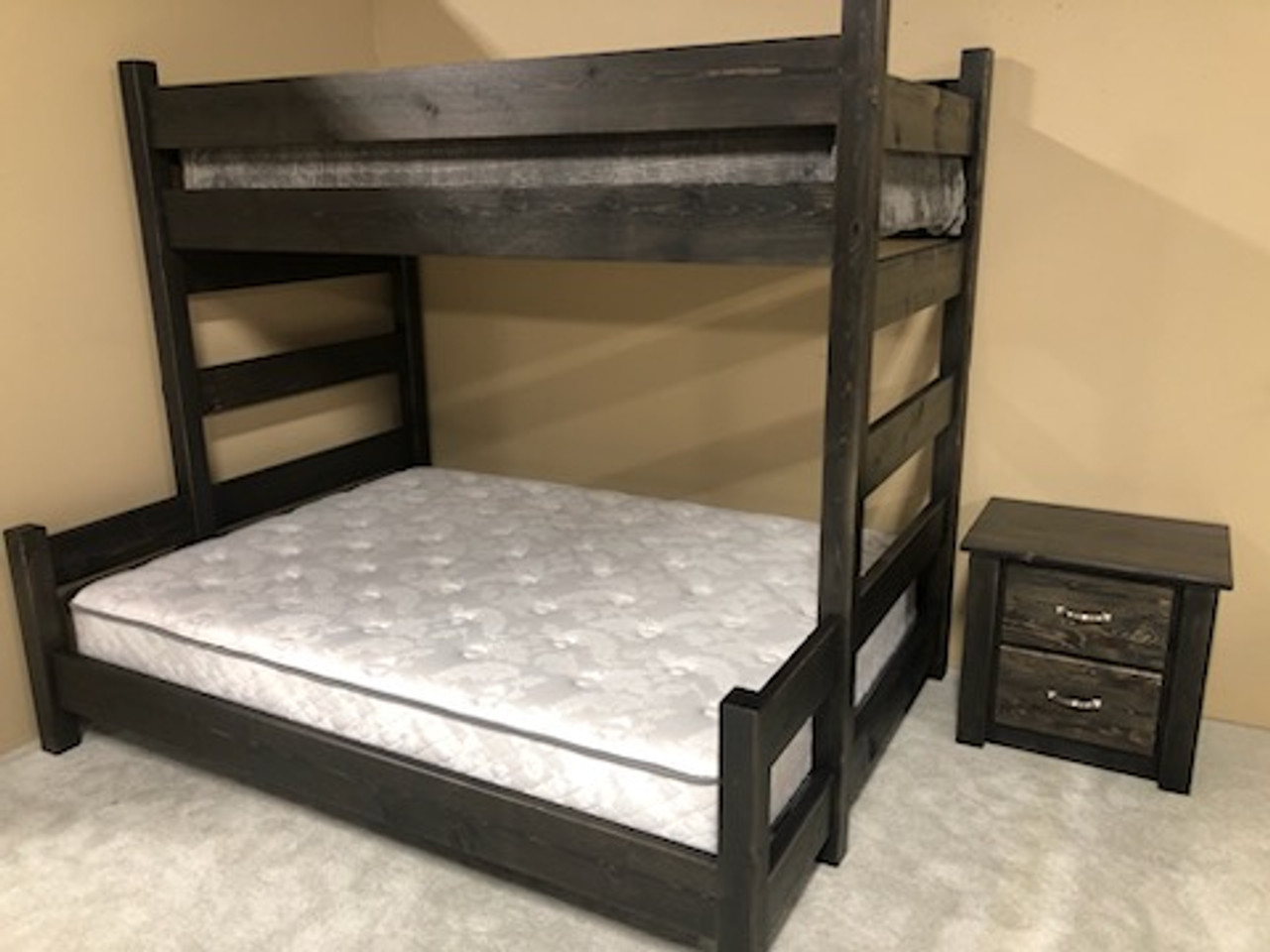 This Crystal Lake farmhouse twin xl over Queen bunk bed, crafted from select Ponderosa Pine, brings a balance of natural charm and contemporary warmth to your space. Unlike heavily distressed or rustic versions, this bed features smooth, moderately sanded surfaces that highlight the subtle grain pattern and warm hues of the pine without looking overly rugged or aged.