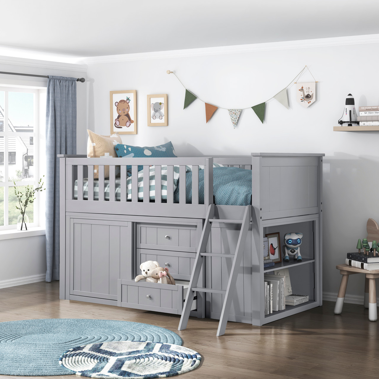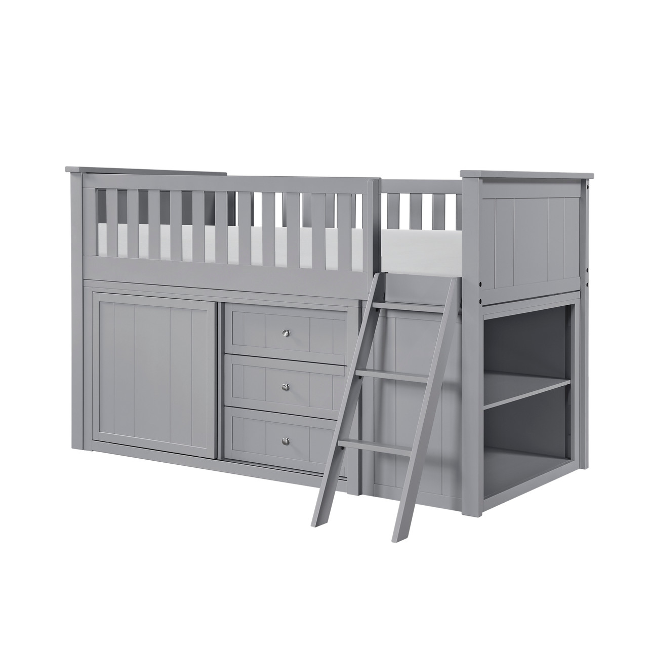 Maximizing sleep space is achieved with the stylish Silverton Collection. This transitional twin low-loft bunkbed is featured in four finishes making it an appropriate choice for a number of youth bedroom settings. An angled ladder provides easy access to the loft platform. Providing below-the-bed storage are the dresser and bookcase, each specifically designed to fit within the parameters of the available lower space with the dresser providing shelf and drawer storage and the bookcase allowing for open display of your child's favorite books and collectables.