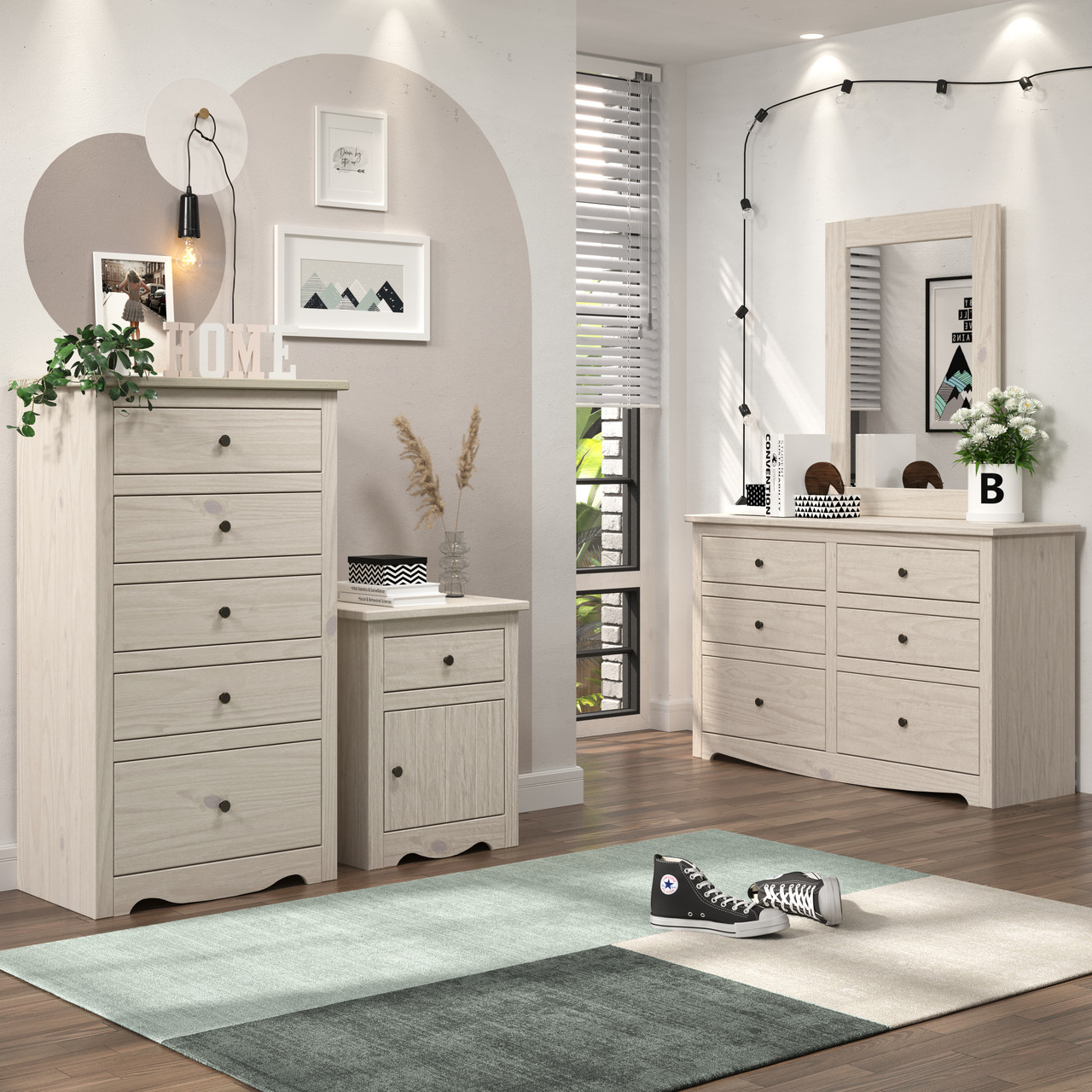 - Mattresses, night stand, desk, chair, chest and dresser are sold separately