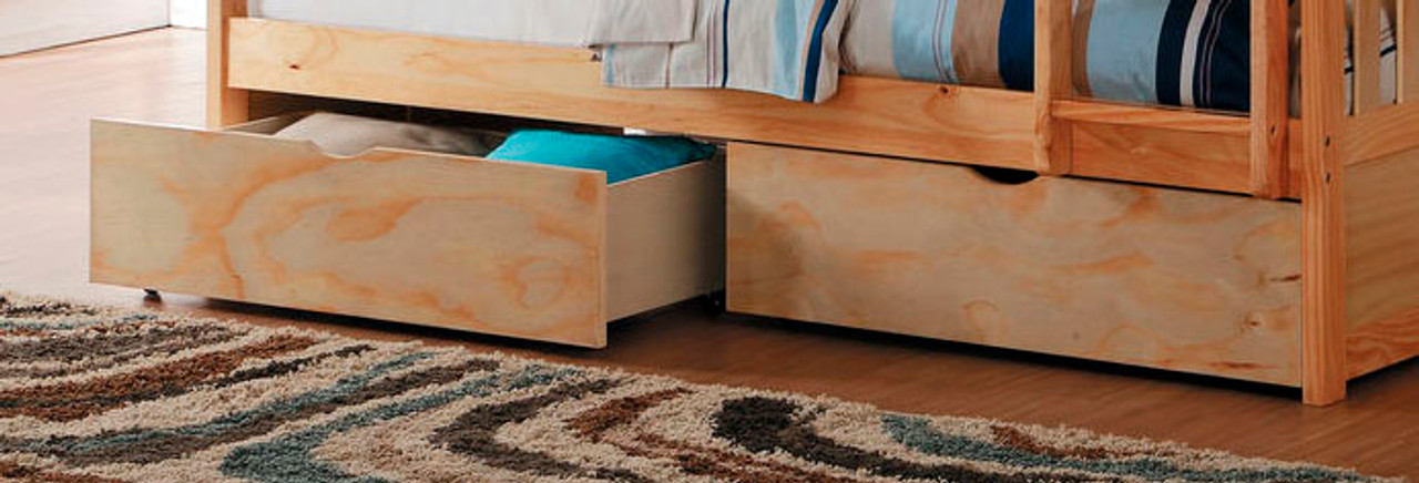 The Charlton pine twin size bunk bed with stairs is style and functionality all rolled into one. It has a classic mission design while maintaining space efficiency. This sturdy bunk is constructed from solid pine and is available in pine, white and gray finish. Featuring slatted-style headboards, safety rails on all sides of upper unit, under bed slat support system, and metal to metal connections to ensure strength and durability. The reversible step storage makes access to the upper unit safer. Under bed customization options include twin trundle or under bed drawers perfect for toys.